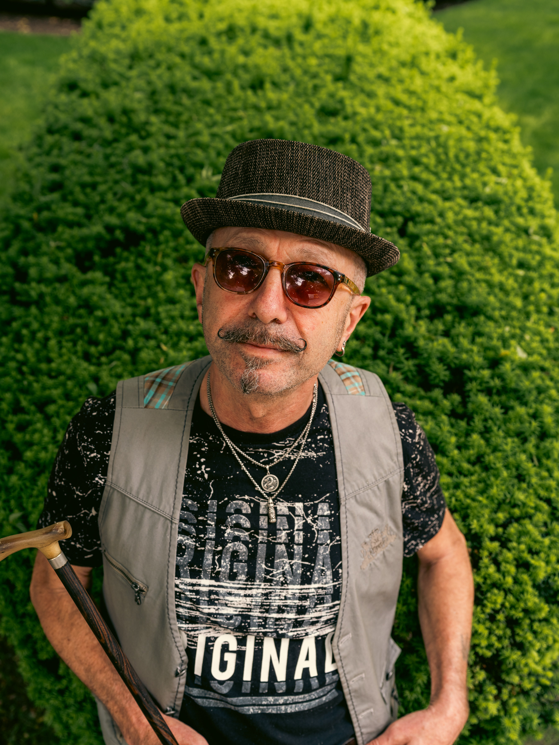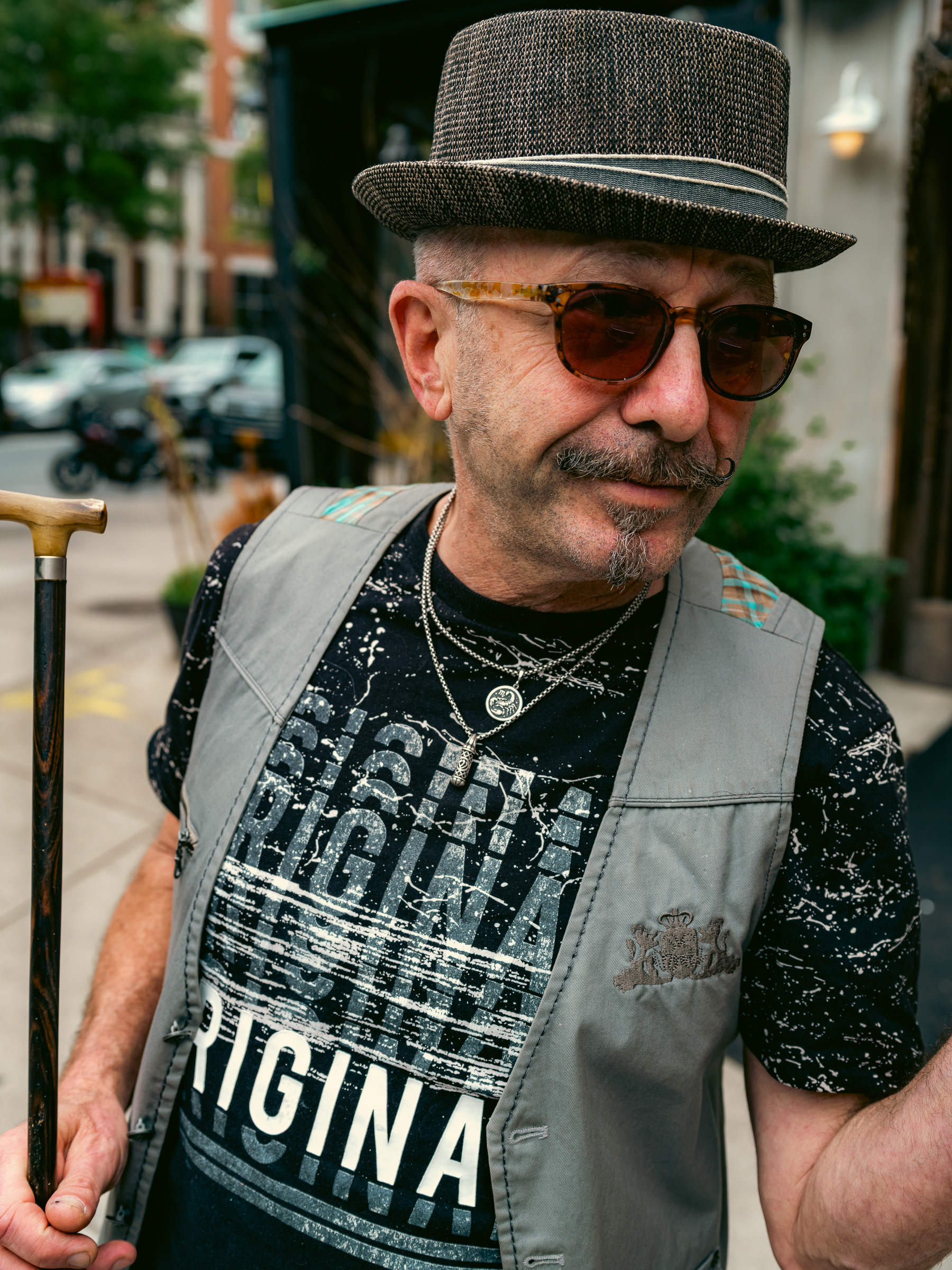 We talked about starting at a café, something casual and familiar, then walking the neighborhood to find textures, light, and mood. Gesha (his stage name) wanted portraits that felt expressive but unforced. Something that reflected who he is, no gimmicks, no stiff setups.